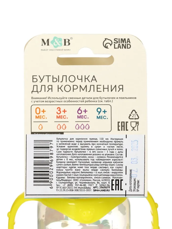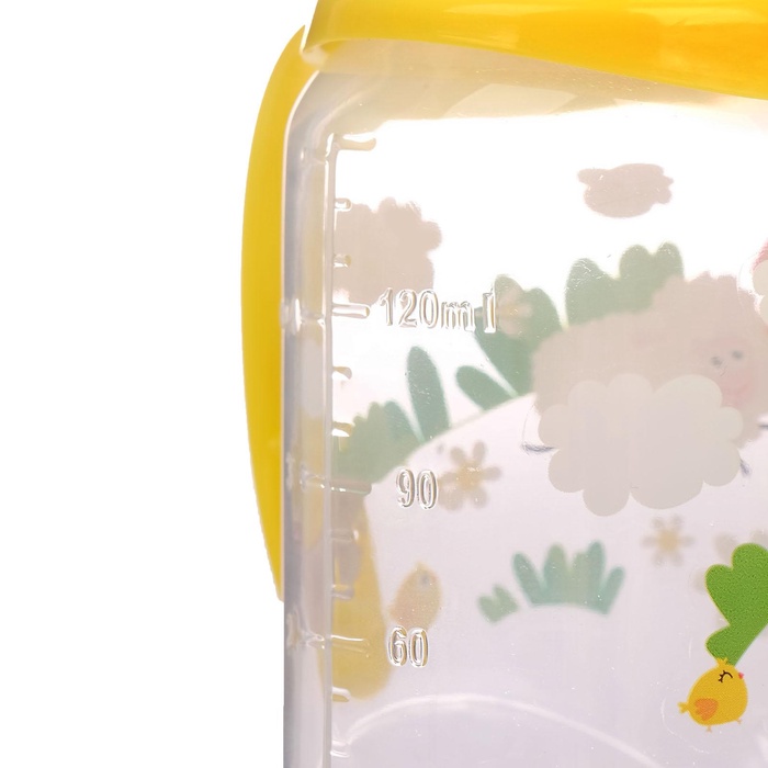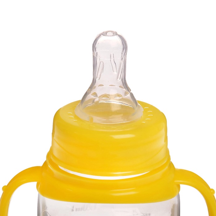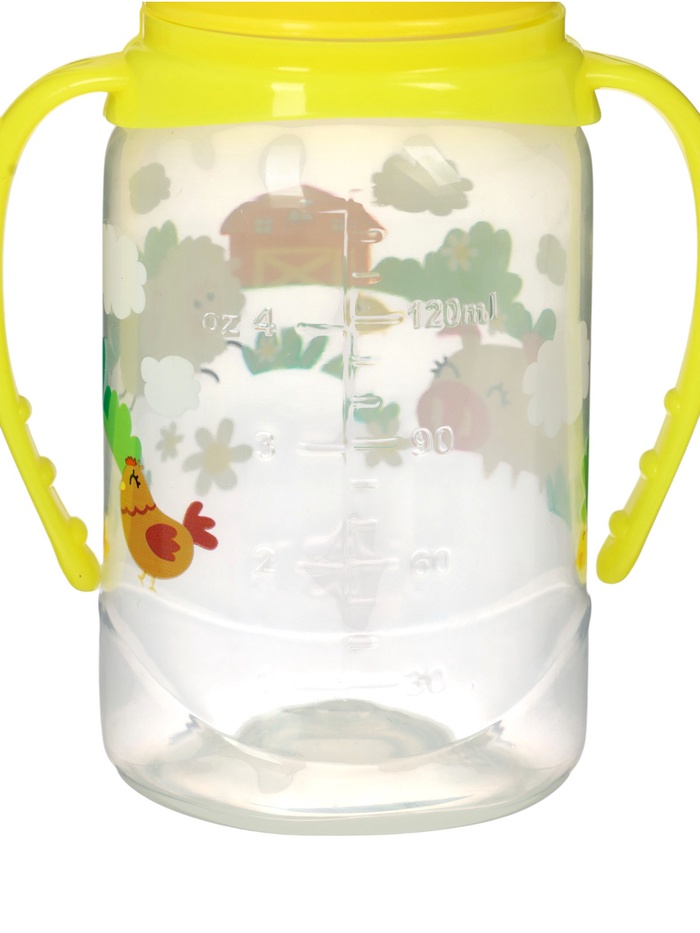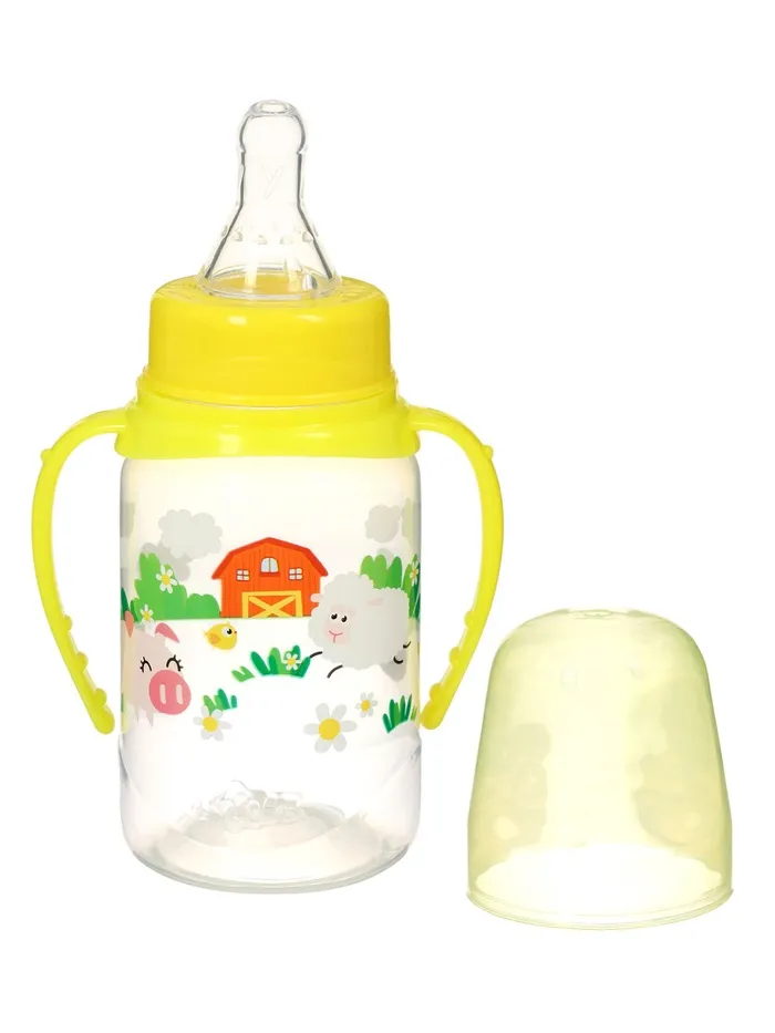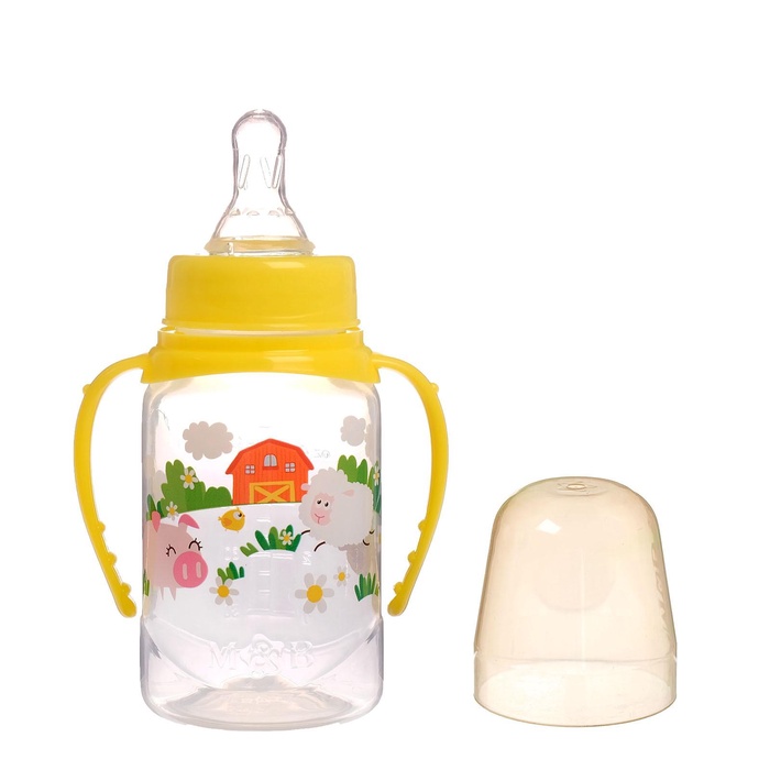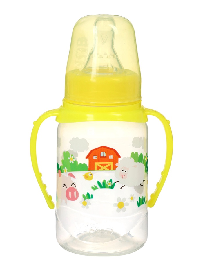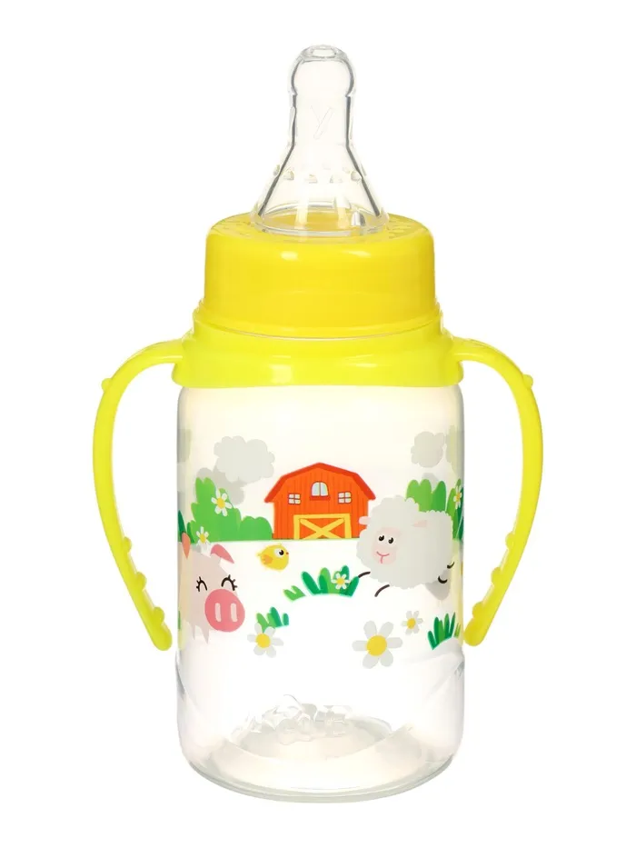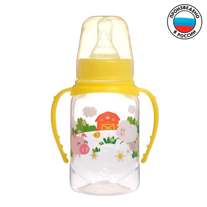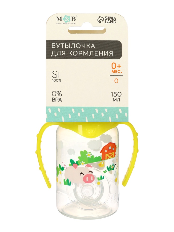 Бутылочка для кормления M&B «Весёлая ферма», классическое горло, с ручками, от 0 мес., 150 мл., жёлтый — Характеристики
