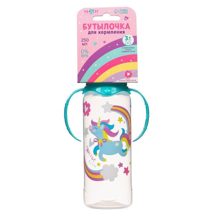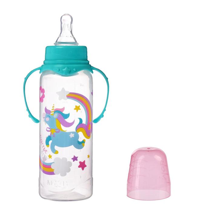 Бутылочка для кормления M&B «Волшебная пони», классическое горло, с ручками, от 3 мес., 250 мл., бирюзовый — Характеристики