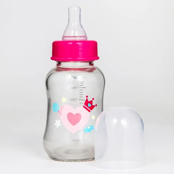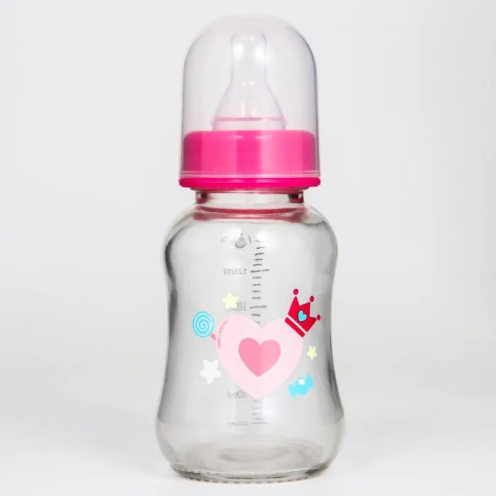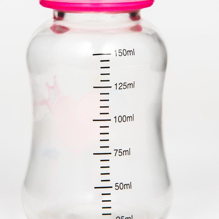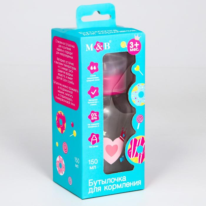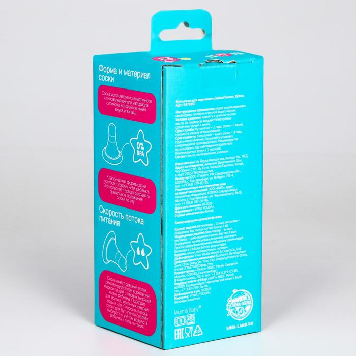 Бутылочка для кормления M&B «Зайка Полли», классическое горло, средний поток, от 3 мес., 150 мл., стеклянная — Характеристики