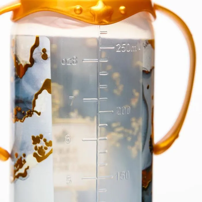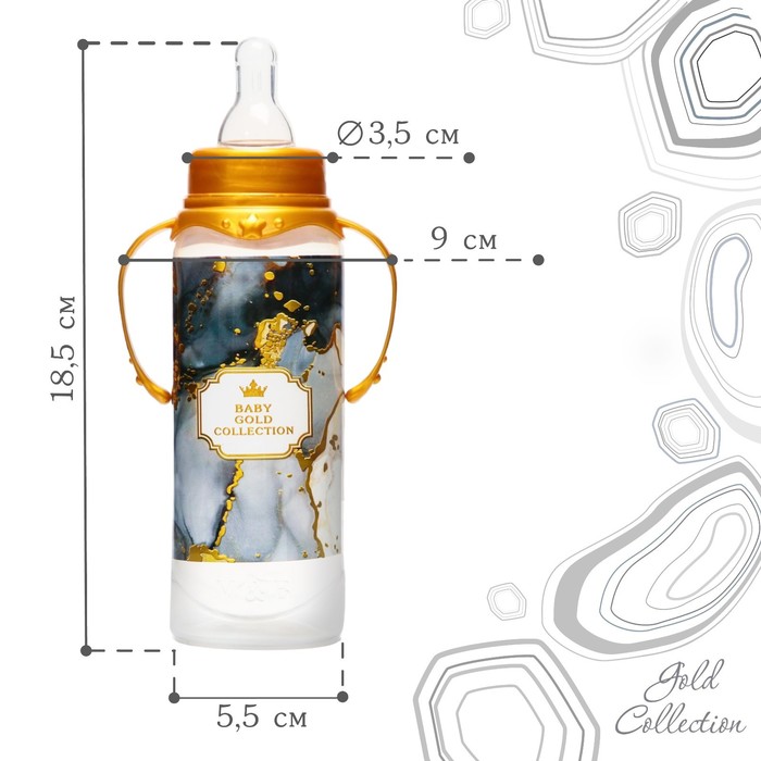Бутылочка для кормления M&B «Золотая коллекция: черный мрамор», классическое горло, с ручками, от 3 мес., 250 мл., цилиндр — Характеристики