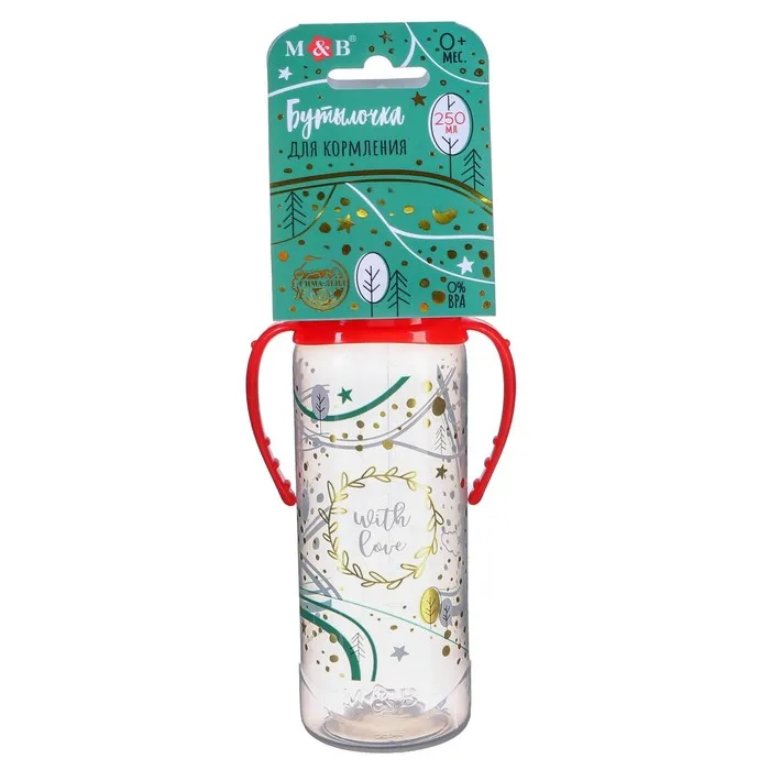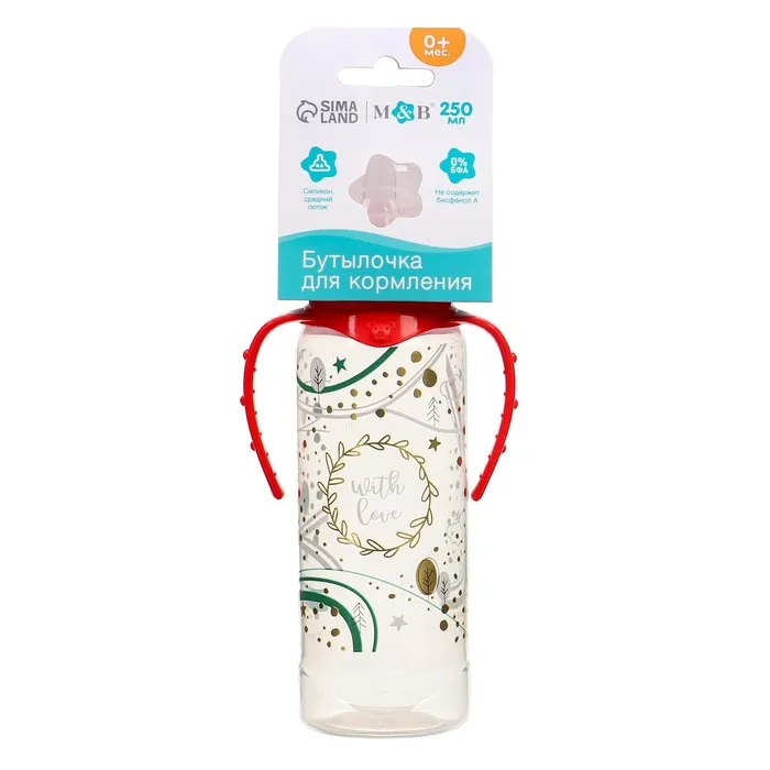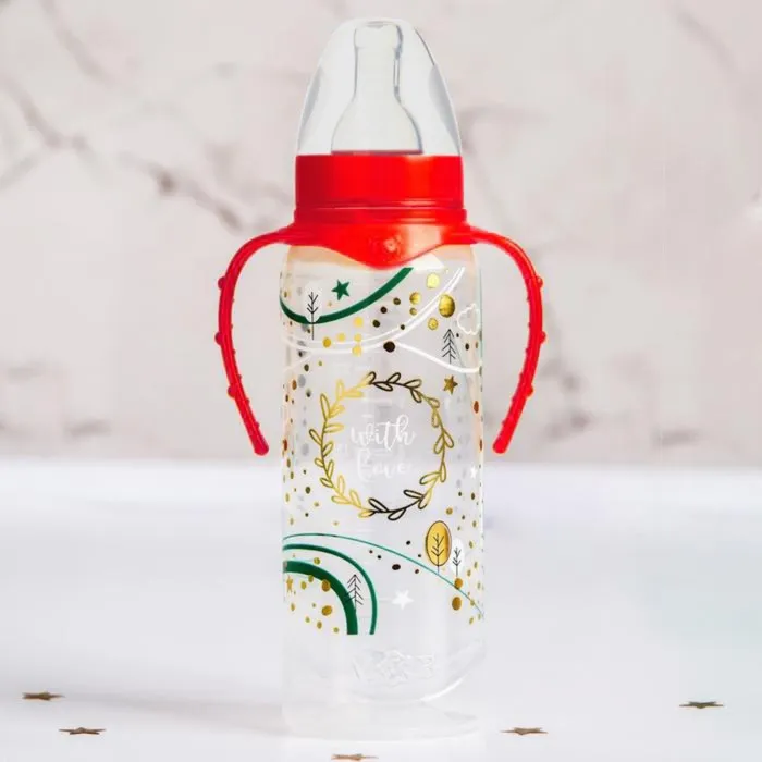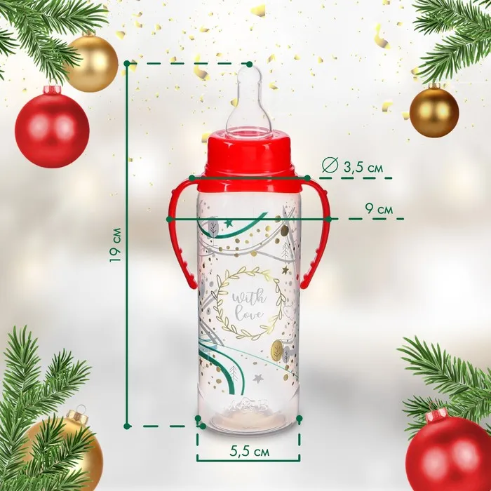 Бутылочка для кормления «Новогодний подарок», классическое горло, 250 мл., от 3 мес., цилиндр, с ручками — Характеристики
