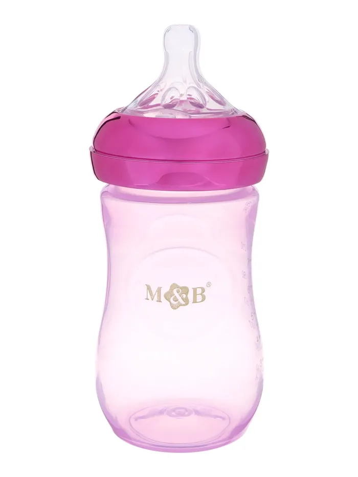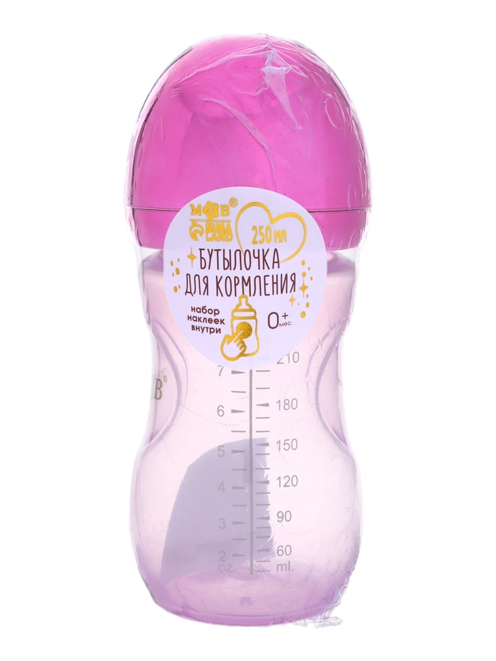 Бутылочка для кормления с наклейками Baby от 0 мес., 250 мл., фиолетовая, M&B — Характеристики