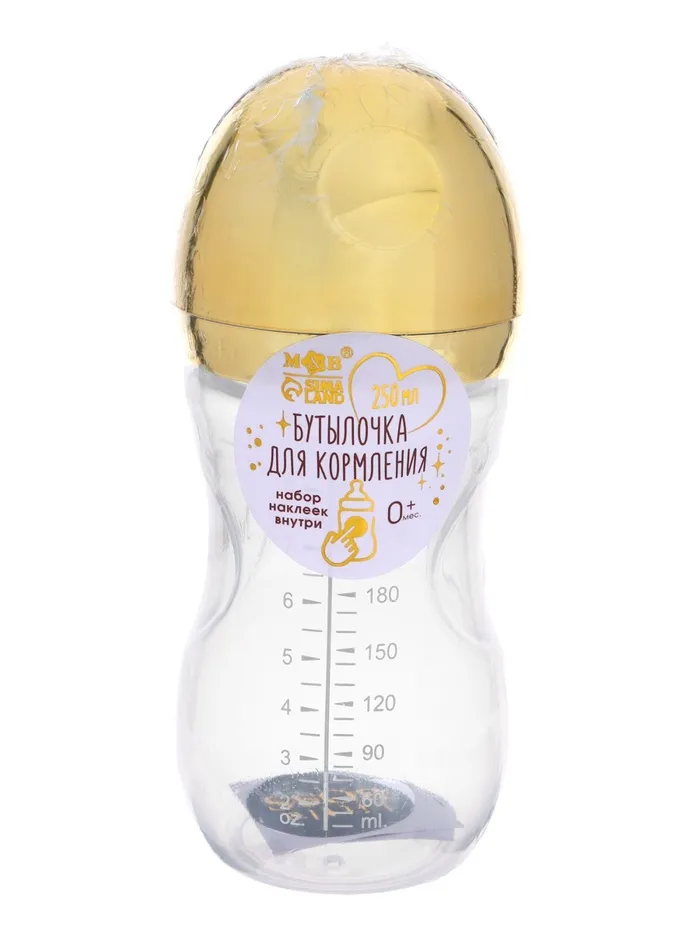 Бутылочка для кормления с наклейками BOSS от 0 мес., 250 мл., цвет золотой, M&B — Характеристики