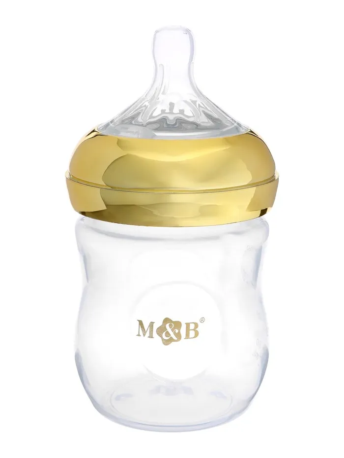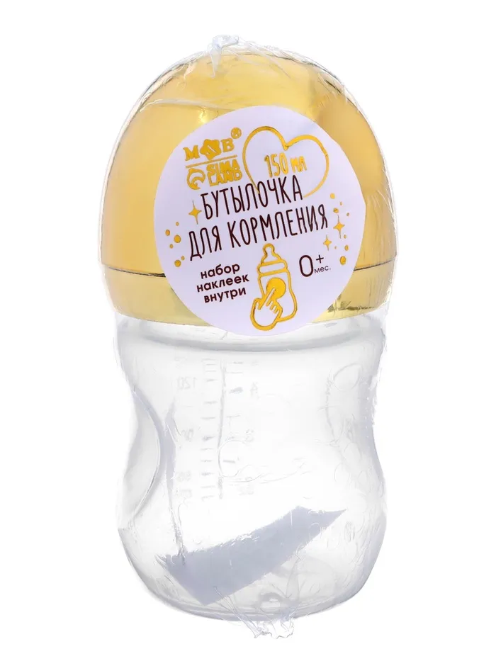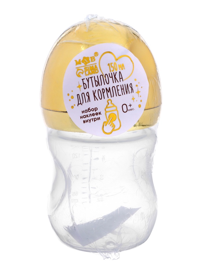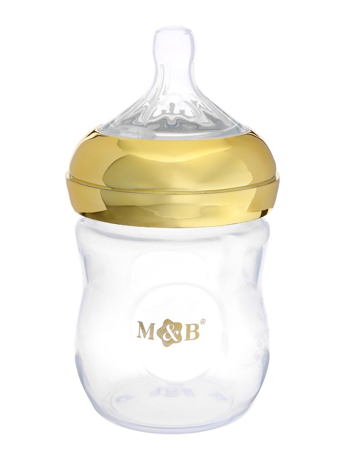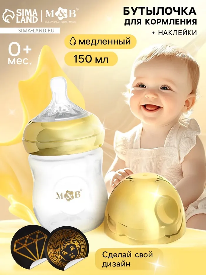 Бутылочка для кормления с наклейками «Золотой малыш» от 0 мес., 150 мл., цвет золотой, M&B — Характеристики
