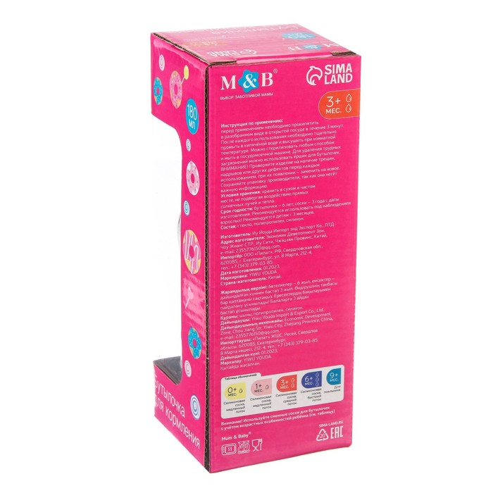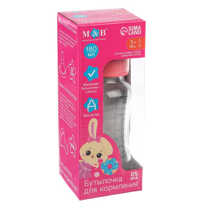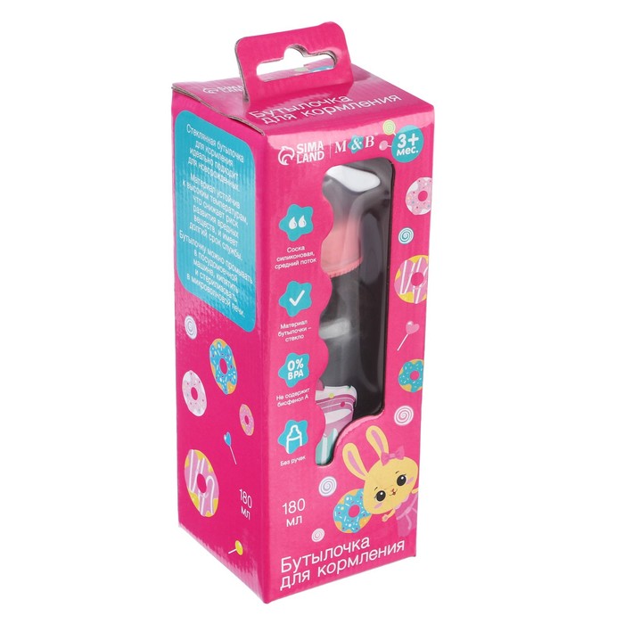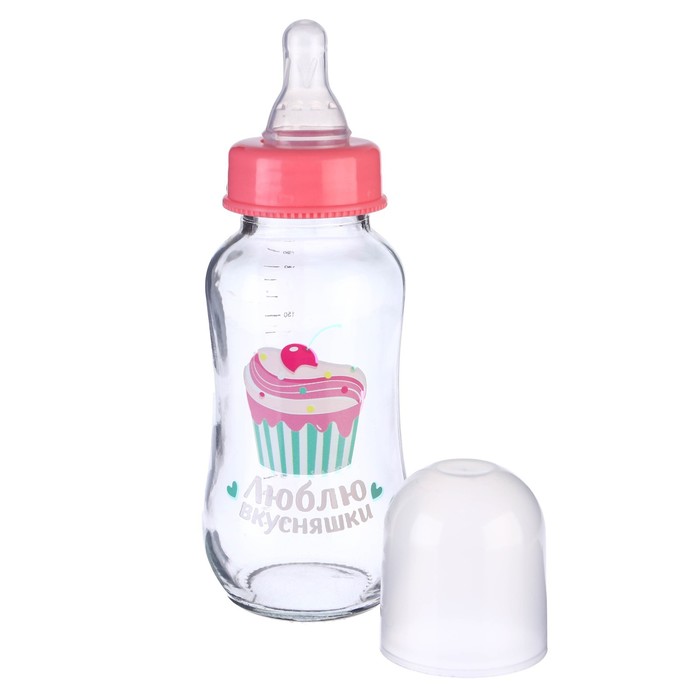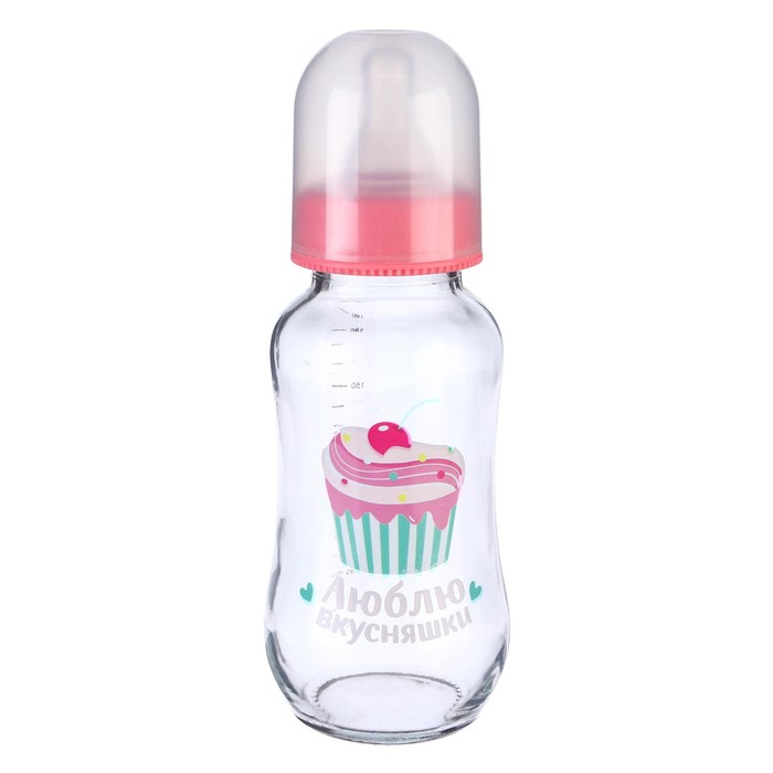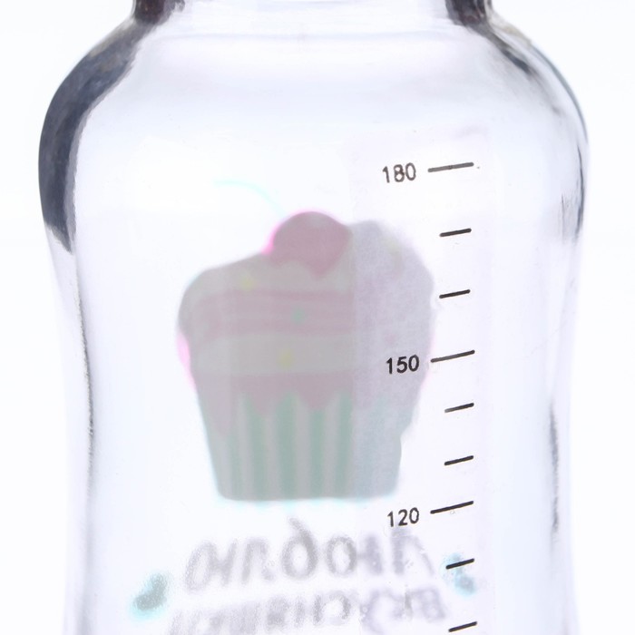 Бутылочка для кормления стекло «Люблю вкусняшки», классическое горло, средний поток, 180 мл., от 3 мес. — Характеристики