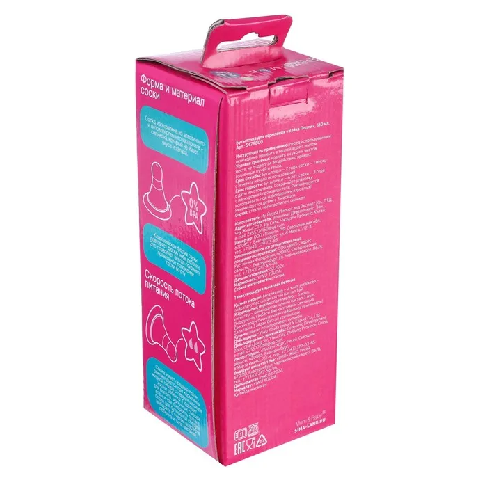 Бутылочка имеет мягкую и гибкую соску, которая не слипнется и будет удобно располагаться у малыша во рту.