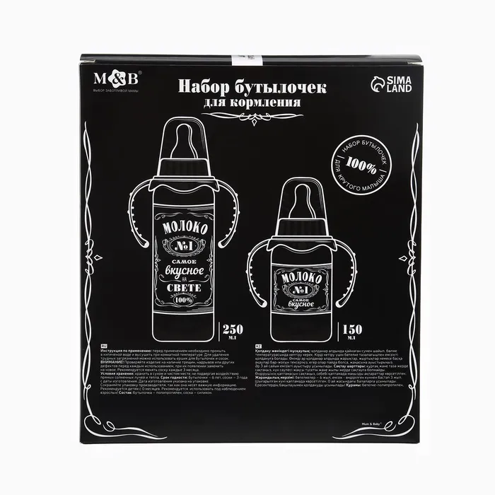 Бутылочка для кормления в наборе M&B «Молоко №1» 150 и 250 мл., 2 шт. — Характеристики