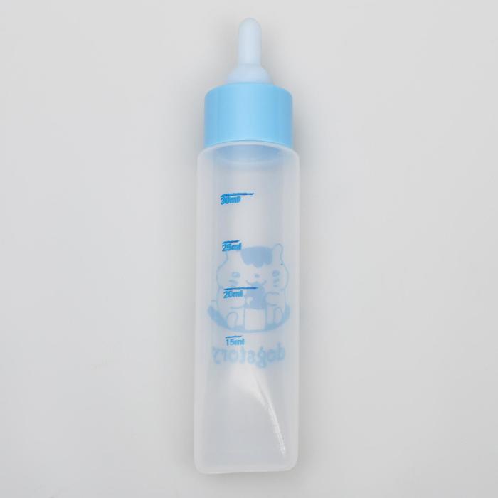 Бутылочка для вскармливания грызунов, 30 мл, с силиконовой соской, короткий носик, пластик, голубая