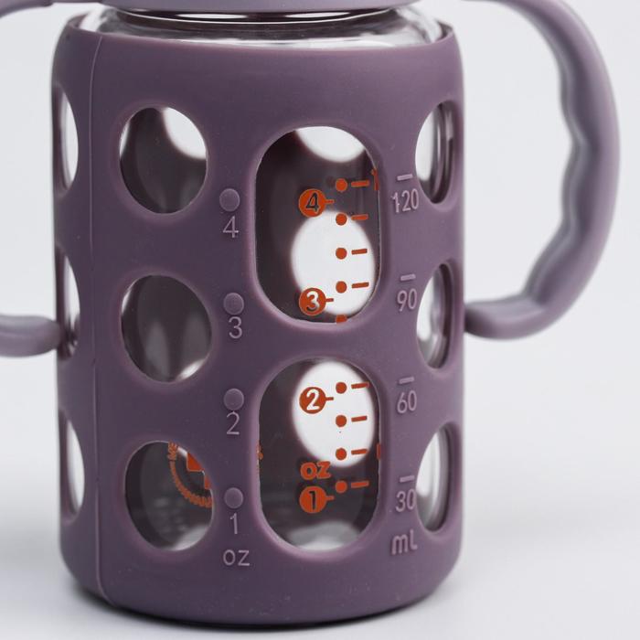 Бутылочка в силиконовом чехле, стекло, классическое горло, +3мес., 120 мл., МИКС, для, девочка — Характеристики