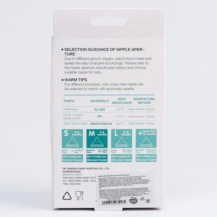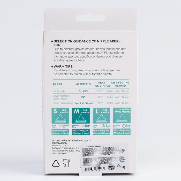 Бутылочка состоит из полностью перерабатываемого боросиликатного стекла высшего качества