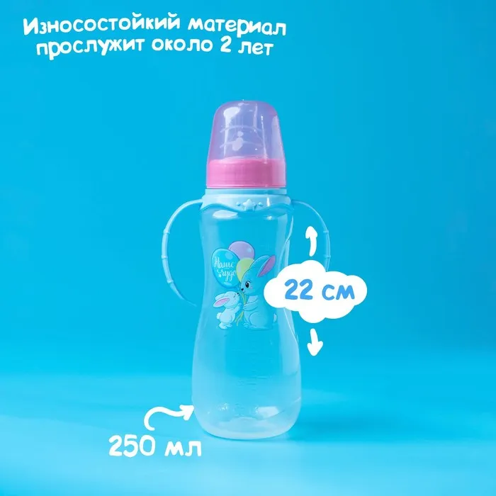 Пластиковая бутылочка мало весит, поэтому её удобно давать ребёнку. Износостойкий материал прослужит около 2 лет.