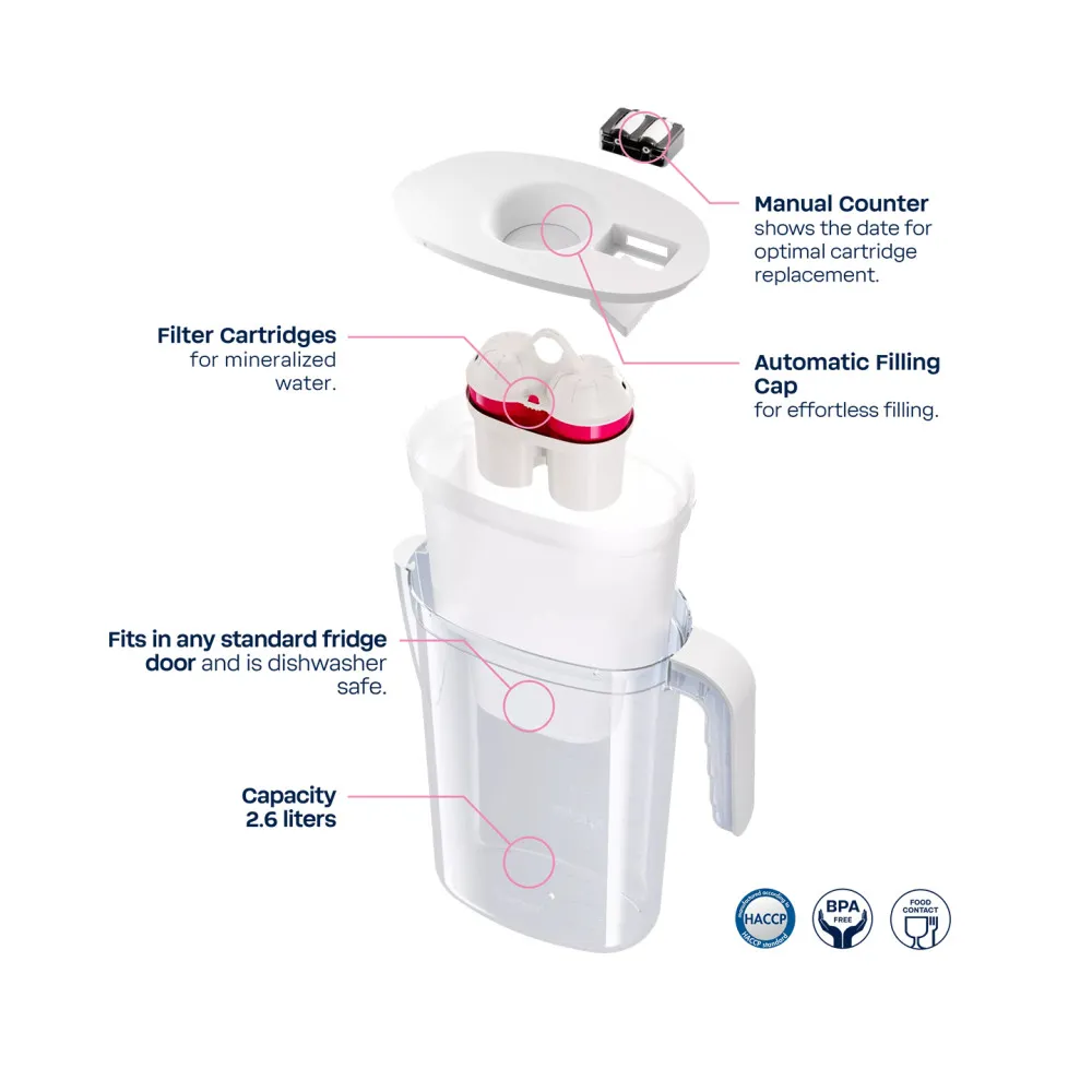 Наслаждайтесь свежей, обогащенной минералами водой с фильтр-кувшином BWT Vida емкостью 2,6 литра! Оснащен запатентованным фильтром с магнием от BWT, который улучшает вкус водопроводной воды и эффективно защищает бытовую технику от накипи.