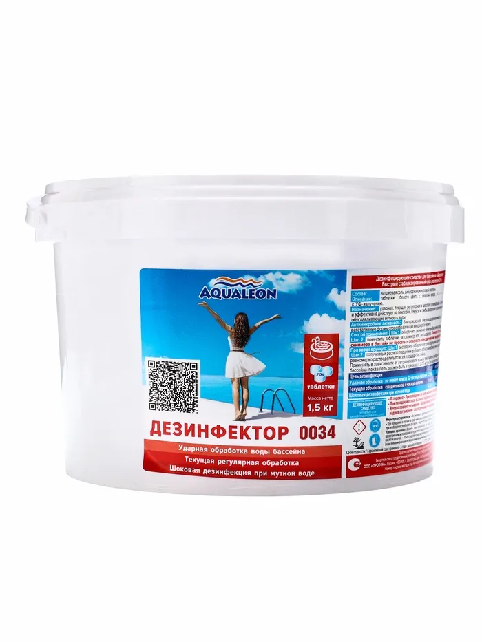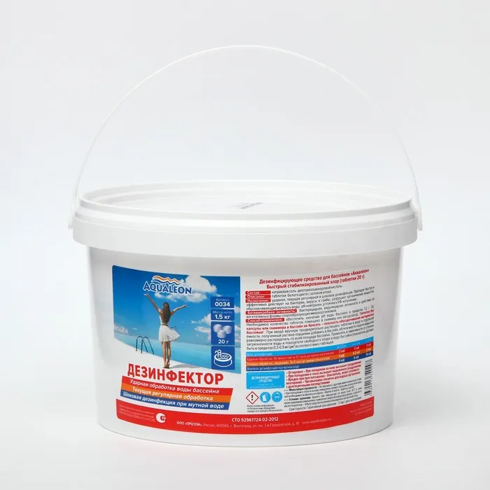 Быстрый стабилизированный хлор Aqualeon таб. 20 гр., 1,5 кг — Характеристики