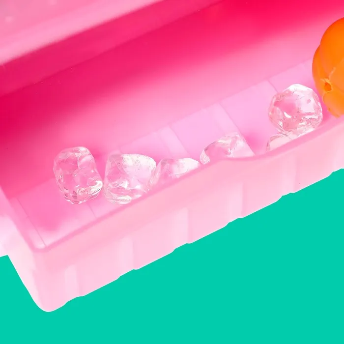 Если станет жарко, положите в морозилку игрушечный лёд, нажмите кнопку, и он выпадет в стаканчик.