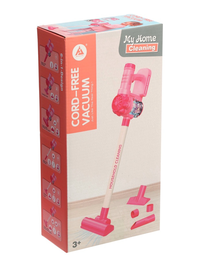 Игрушечный пылесос помогает ребёнку почувствовать себя настоящим помощником по дому, игра становится увлекательной и яркой. Модель лёгкая и удобная, ручка комфортно лежит в руке, насадки быстро меняются, а прозрачная камера с вращающимися шариками делает процесс более живым. Пылесос работает от батареек, издаёт реалистичные звуки и позволяет ребёнку полностью погружаться в игру, повторяя действия взрослых и развивая интерес к порядку и аккуратности.