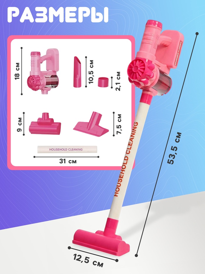 Бытовая техника «Пылесос», с насадками, звуковые эффекты — Характеристики