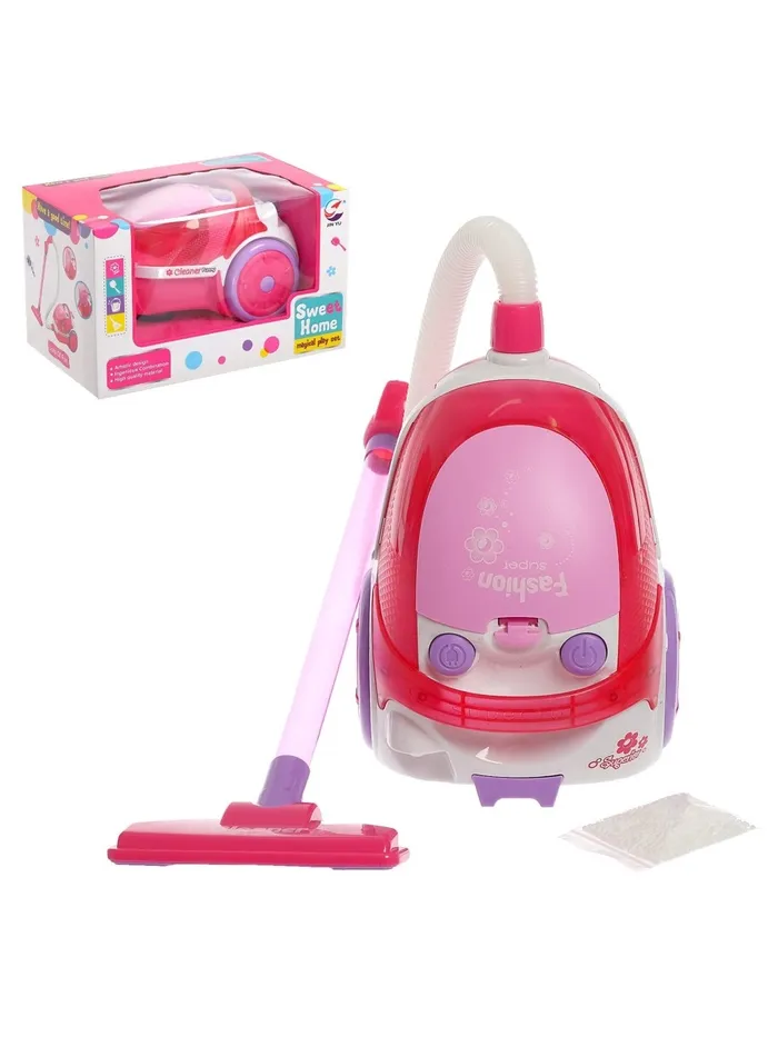 - Пылесос оснащён световыми и звуковыми эффектами, создающими ощущение настоящей уборки. Ребёнок почувствует себя взрослым, управляя «техникой», которая всасывает мусор.