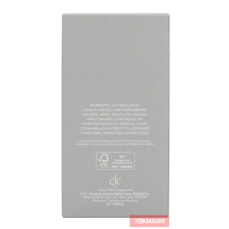 Calvin Klein Ck All Edt Spray 100 мл — это аромат, который подходит для любого случая. Оцените его уникальный свежий и универсальный аромат, который понравится как мужчинам, так и женщинам. Этот парфюм — идеальный выбор для тех, кто ценит стиль и элегантность.