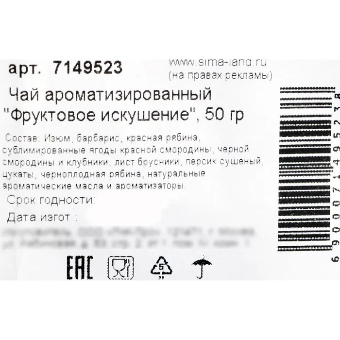 Упаковка в 50 г удобна для хранения и транспортировки, так что вы сможете легко брать его с собой в путешествия или на работу. "Фруктовое искушение" станет отличным вариантом как для личного чаепития, так и для угощения гостей.