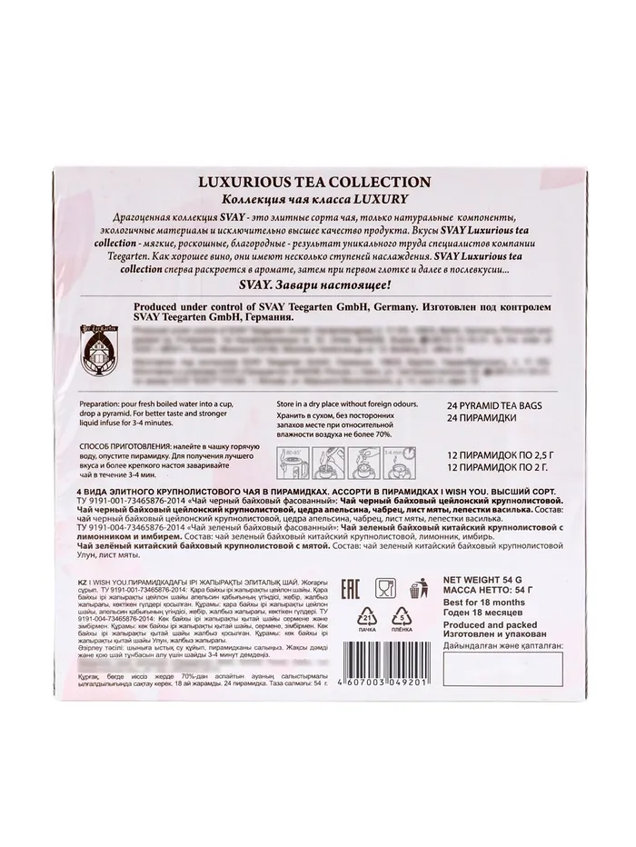 Чай ассорти «SVAY. Luxurious tea collection», 24 пирамидки, 54 г — Характеристики