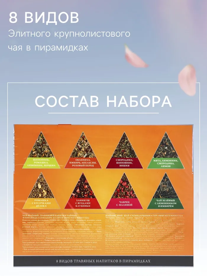 Погрузитесь в мир вкусов и ароматов! Чайное ассорти в пирамидках - это великолепное сочетание черного и зеленого чая с ягодными добавками. Упаковка включает 48 пирамидок, каждая из которых дарит уникальный вкус, включая жасмин, яблоко, клубнику, смородину, шиповник, вишню, имбирь, апельсин, фенхель, анис, ромашку, вербену и облепиху. Этот набор идеально подходит для празднования 8 Марта, создавая атмосферу уюта и радости.