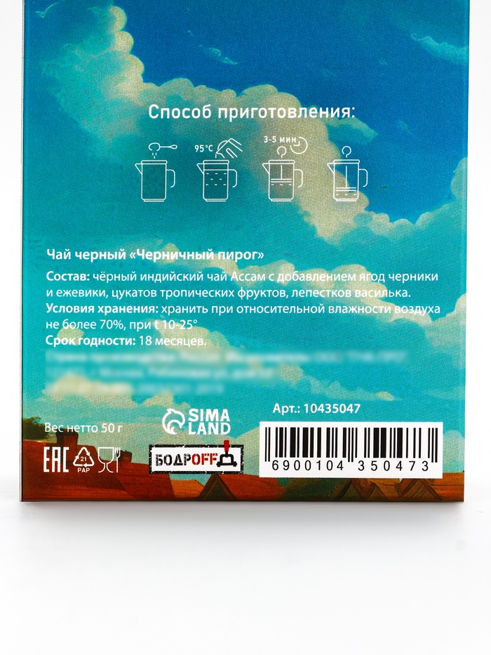 Чай черный «Поздравляю» капибара, со вкусом черничный пирог, 50 г — Характеристики