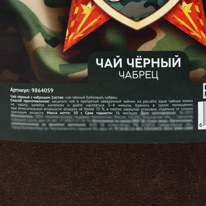 Чай чёрный «23 февраля» с чабрецом, 50 г. — Характеристики