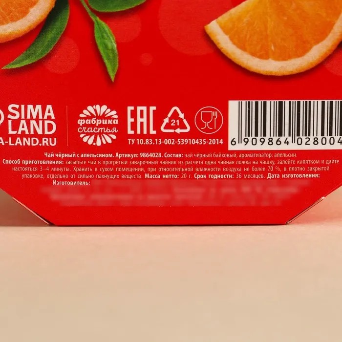 Чай чёрный «Апельсиновый фреш», вкус: апельсин, 20 г. — Характеристики