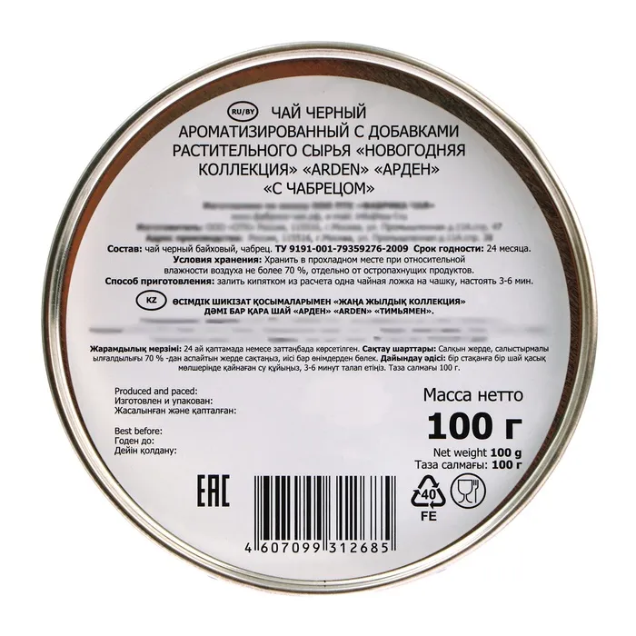«Arden» — это новогодний чёрный чай в подарочной банке с чабрецом. Этот чай станет отличным подарком для тех, кто ценит качество и аромат напитка.