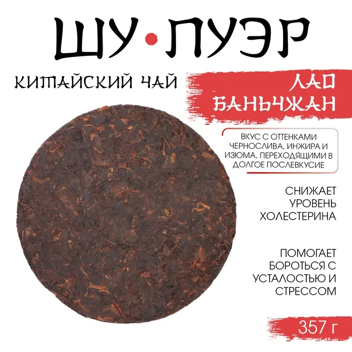 Китайский чай “Шу Пуэр Лаобаньчжан” выращен в уезде Мэнхай в 2022 году.