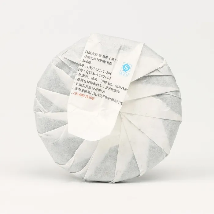 Чай чёрный китайский выдержанный «Шу Пуэр. Bailing jinya», Юньнань, 2014 г., блин, 100 г