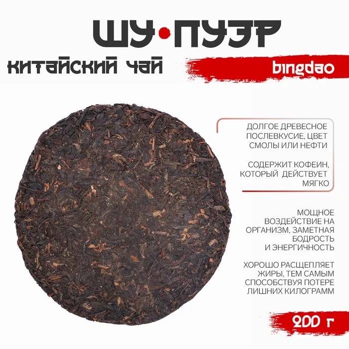 Чай чёрный китайский выдержанный «Шу Пуэр Bingdao», 2020 г., блин, 200 г — Характеристики