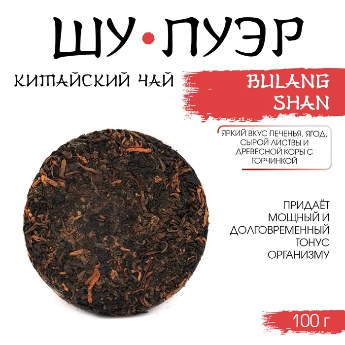 Чай чёрный китайский выдержанный «Шу Пуэр. Bulang Shan», Юньнань, 2020 г., блин, 100 г — Характеристики
