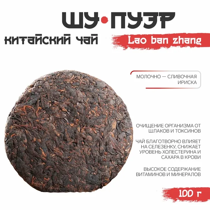 Чай чёрный китайский выдержанный «Шу Пуэр. Lao ban zhang», Юньнань, 2014 г., блин, 100 г — Характеристики