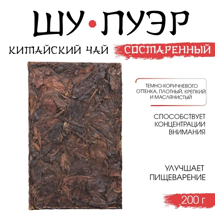 Чай чёрный китайский выдержанный «Шу Пуэр. Состаренный», Юньнань, 2021 г., кирпич, 200 г — Характеристики