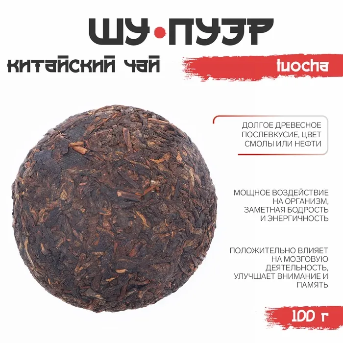 Чай чёрный китайский выдержанный «Шу Пуэр Tuocha», 2020 г., блин, 80 г — Характеристики