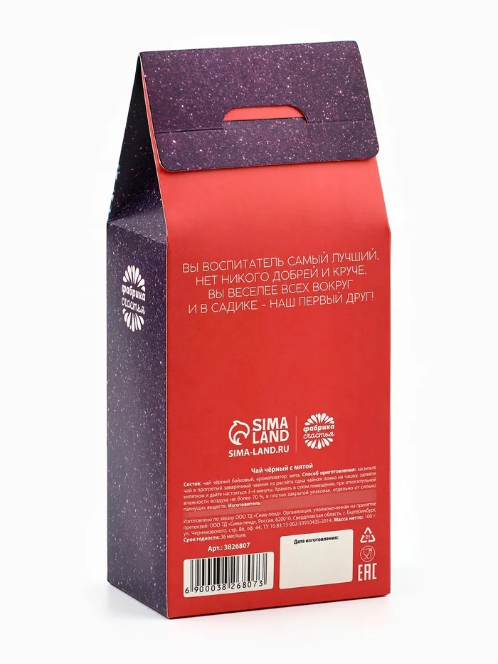Чай чёрный «Любимому воспитателю», вкус: мята, 100 г — Характеристики