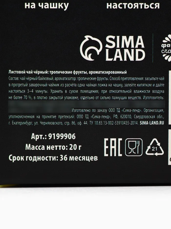 Состав: чай чёрный байховый, ароматизатор: тропические фрукты.