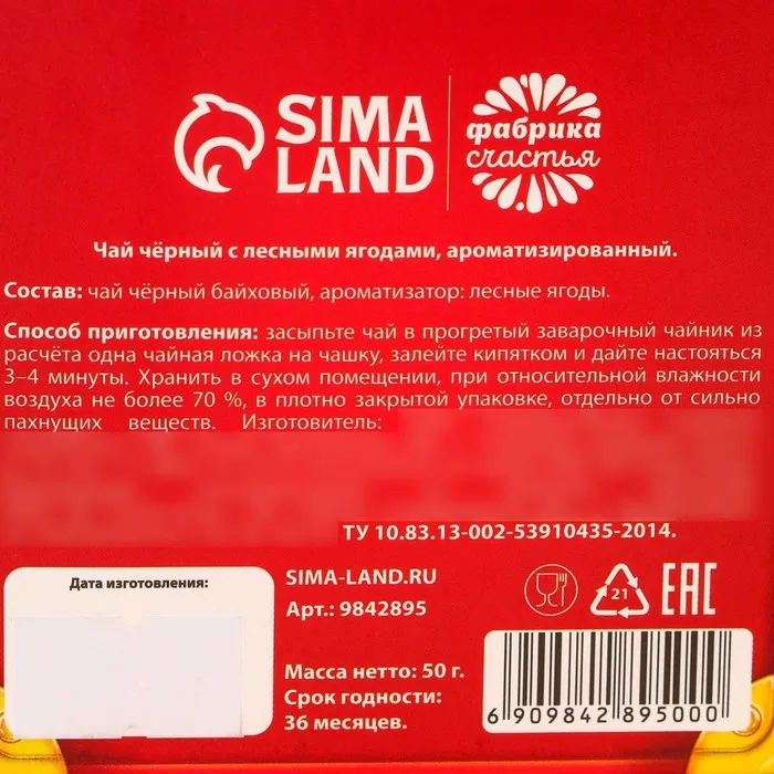 Чай чёрный «Новогодняя почта», вкус: лесные ягоды, 50 г. — Характеристики