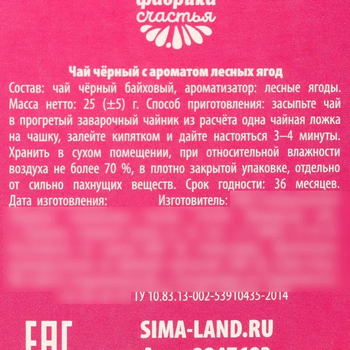 Чай чёрный «Новогодний эликсир» вкус: лесные ягоды, 25 г. (18+) — Характеристики