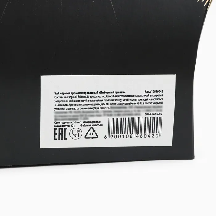 Чай чёрный новогодний «Счастья и удачи», со вкусом имбирного пряника, 20 г. — Характеристики