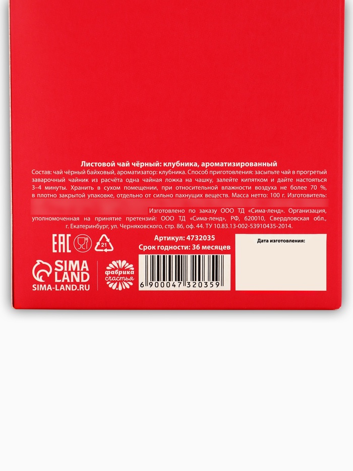 Состав: чай черный байховый, ароматизатор: клубника.