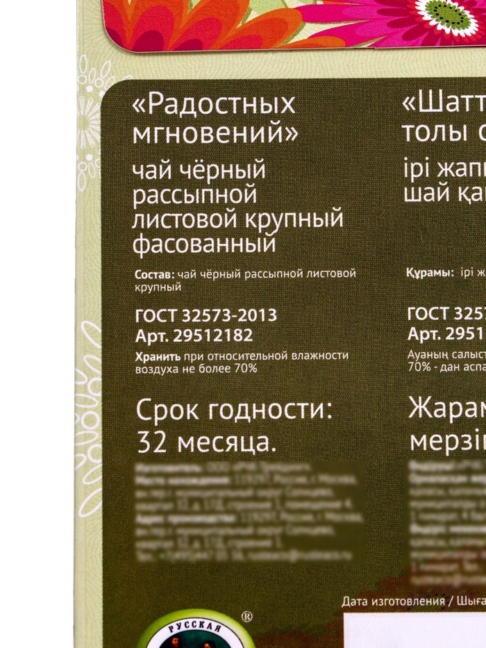 Чай чёрный «Радостных мгновений», 50 г — Характеристики
