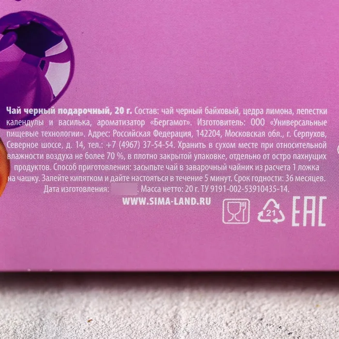 Чай чёрный «С днем рождения», бергамот и лепестки василька, 20 г. — Характеристики