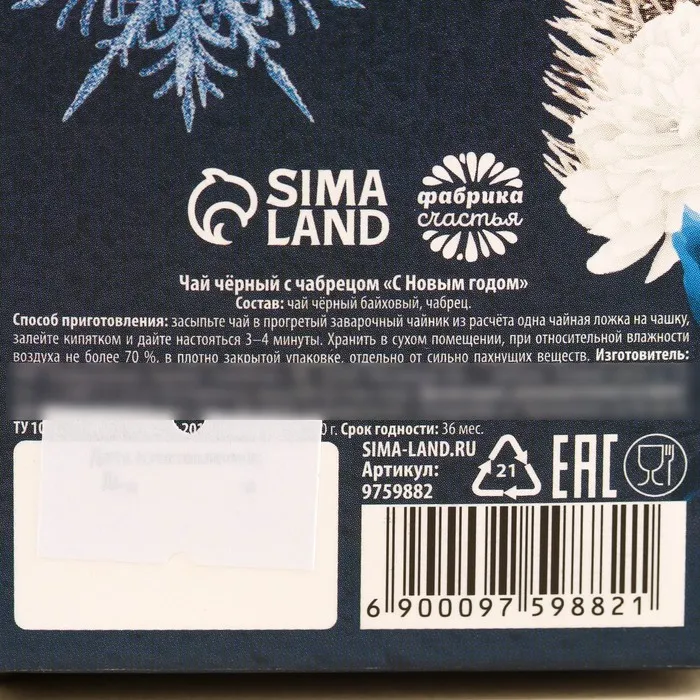 Чай чёрный «С Новым годом», с чабрецом, в коробке конфете, 100 г. — Характеристики