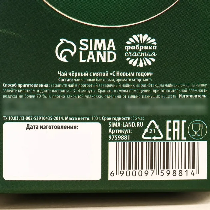Чай чёрный «С Новым годом» с мятой, в коробке конфете. 100 г. — Характеристики