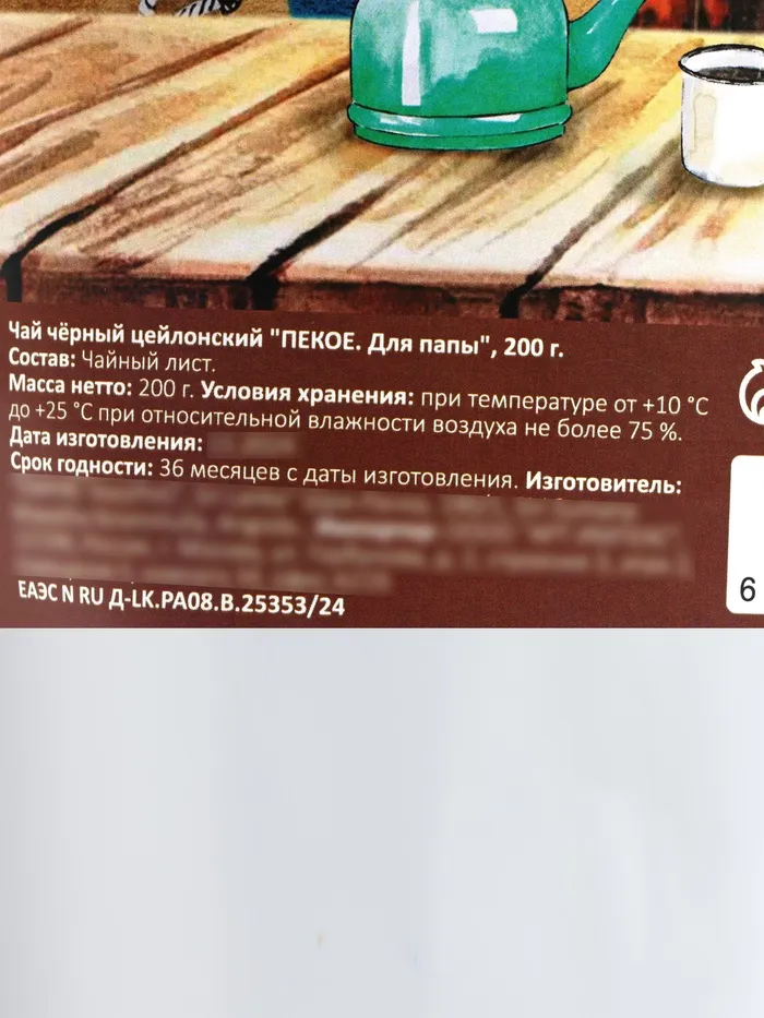 Чай чёрный цейлонский "ПЕКОЕ. Для папы", 200 г — Характеристики