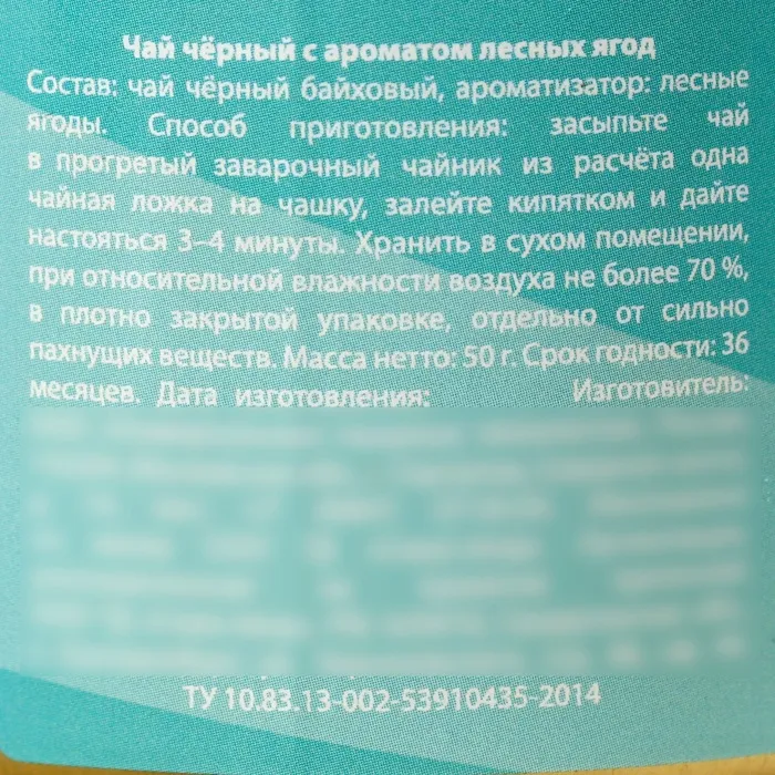 Состав: чай чёрный байховый, ароматизатор: лесные ягоды.
