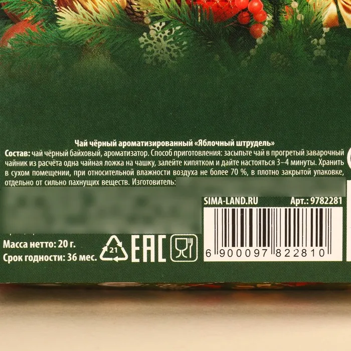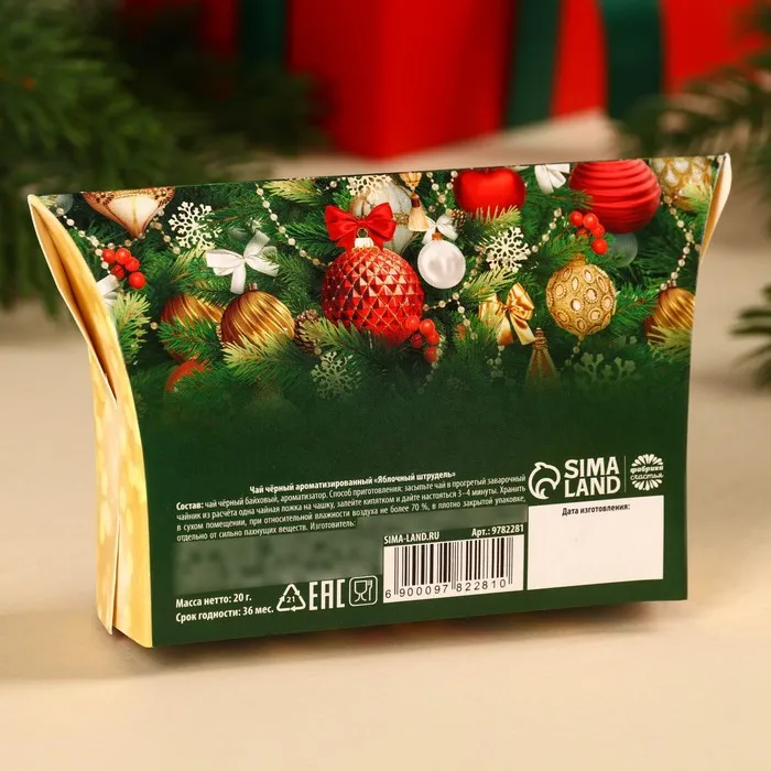 Чай чёрный в коробке «Ёлка», вкус: яблочный штрудель, 20 г. — Характеристики