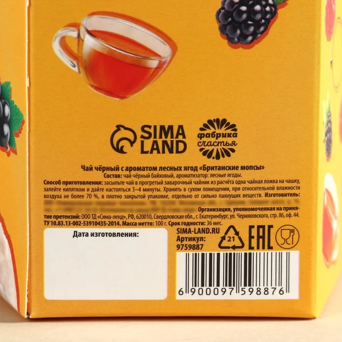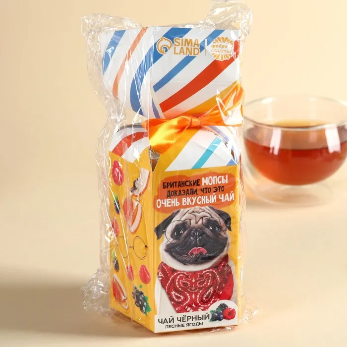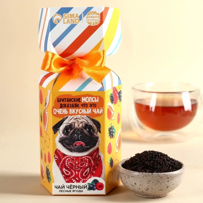 Чай чёрный в коробке конфете «Британские мопсы», вкус: лесные ягоды, 100 г. — Характеристики